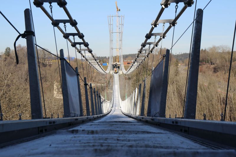 Mithilfe von Ticketautomaten wird die Neckar Line von beiden Seiten aus zugänglich sein, wobei die meisten Menschen sicherlich das Angebot der 100 Parkplätze beim Besucherzentrum auf dem Berner Feld nutzen werden, dem direkt an der B 27 gelegenen Rottweiler Gewerbegebiet. Dort wird vom 24. bis zum 26. April gefeiert – mit Festzelt, einer ganzen Reihe von Verkaufsständen, zwei Foodtrucks, Blasmusik am Vormittag und DJs am Nachmittag. Im Rahmen eines Gottesdiensts findet die förmliche Brückenweihe am Samstag, 25. April, von 14 Uhr an statt.